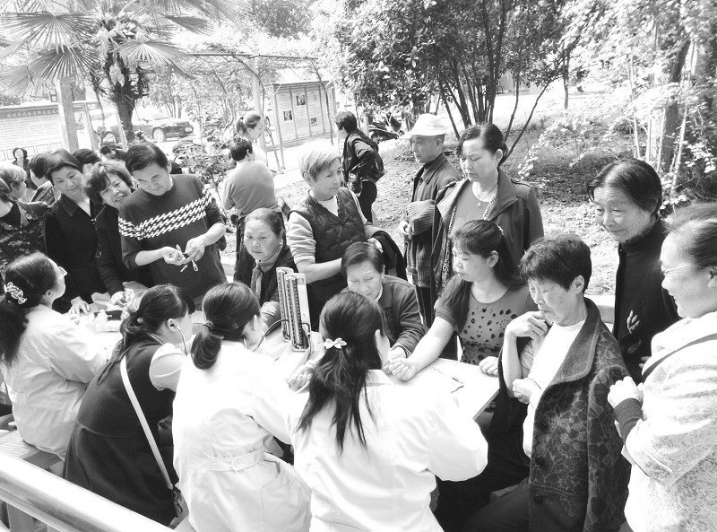 近日,曾都区东城社区卫生服务中心医师团队深入文峰社区,为居民开展基本公共卫生服务,为居民建立健康档案,免费测血压、血糖,免费为65岁以上老人进行血糖、血脂、肝肾功能、血常规、尿常规、心电图、B超检查,并为前来咨询的居民发放健康教育宣传册、健康教育处方,进行健康咨询。 (通讯员 童 琳摄)