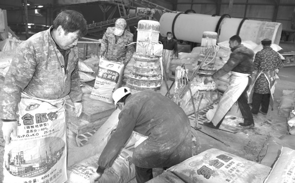 湖北源丰化工正在抓紧赶制生物化肥。今年,该公司已经获得泰国一公司的1000万吨生物化肥订单,为企业发展打下了坚实的基础。 (本报记者 孙洪涛 通讯员 王涛 摄)