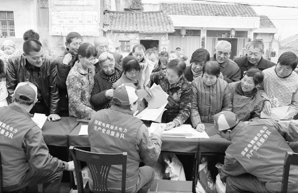 3月2日,国网随县供电公司工作人员到随县均川镇开展“学雷锋·爱心助三农”活动,受到当地群众的欢迎。(记者 孙洪涛 通讯员 匡志鸿 摄)