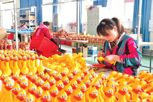 随县鸿荣盛玩具公司生产的儿童玩具采用天然橡胶纯棉布等材料,产品深受欧美市场消费者青睐。(记者 孙洪涛 通讯员 龚承斌摄)