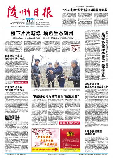 本报讯 记者张琴、实习生张静竹、通讯员张斌贝报道:春回大地新,植绿正当时。在植树节来临之际,3月10日上午,市委书记刘晓鸣、市长郄英才、市政协主席黄志群、市委副书记彭明方等市“四大家”领