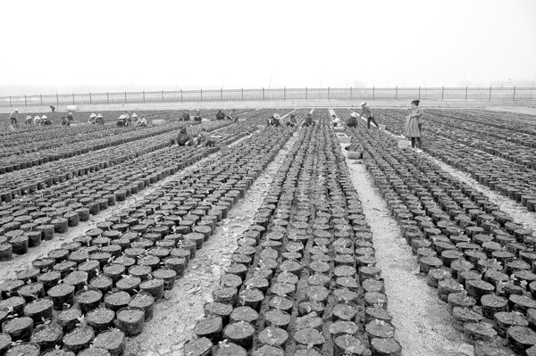 下图:湖北丰年农业开发有限公司致力荒山改造,投资2亿元大力发展木本油料产业。图为3月7日,该公司组织劳力将刚刚购回的20万株油茶幼苗定植培育。(本报记者 徐斌摄)