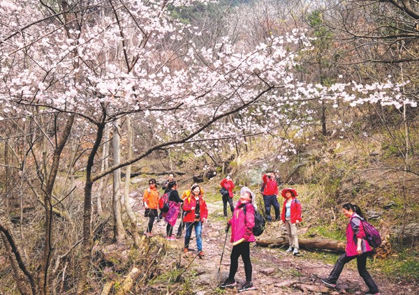 烂漫樱花惹人醉。时值大洪山万株樱花盛开时节,各地赶来赏樱花的游客络绎不绝。 (记者 李文军摄)