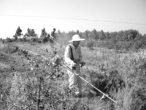 随州颐养生态农业科技有限公司,走“合作社+农户+基地+龙头企业”的发展之路,建设的万亩油茶基地带动周边村民共同致富。图为员工为油茶园除草的情景。 (本报记者忠诚 摄)