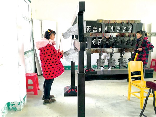 艺术团的“演员们”正在演奏编钟乐曲。(记者 周强摄)