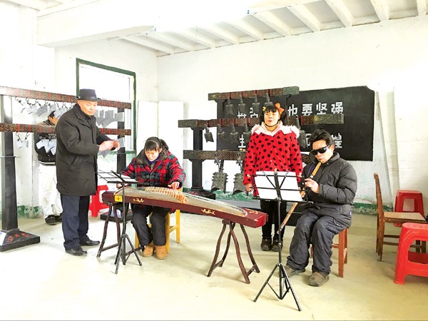 去年8月,夏昶斥资数万元采购回编钟、编磬等古乐器,创办了曾都区爱心职业培训学校编钟艺术团,艺术团里有十名成员,都是残疾人,专门请来专业人员培训他们演奏传统古乐器。
