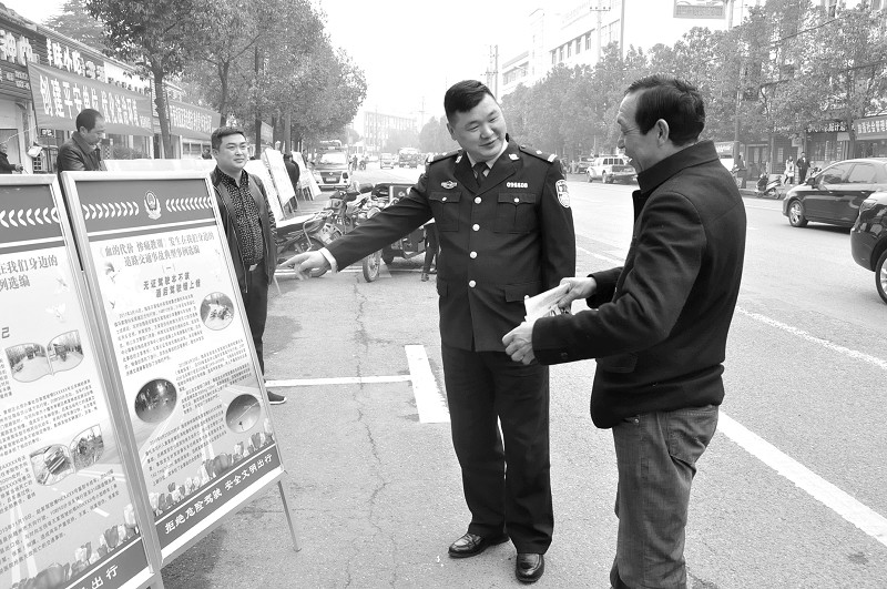随县公安局交警部门近日在随县厉山镇天星街开展了以“安全文明出行”为主题的宣传活动。(本报记者周强摄)