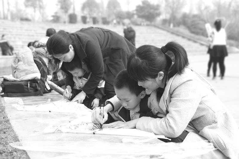 ◆春日里草长莺飞、花红柳绿,到处是一片生机勃勃的景象,家长们纷纷领着孩子来到户外,感受春暖花开的季节,增进和谐、亲密的亲子关系。图为4月8日在随州文化公园,家长与孩子一起在风筝上作画。(本报记者 王 天 摄)