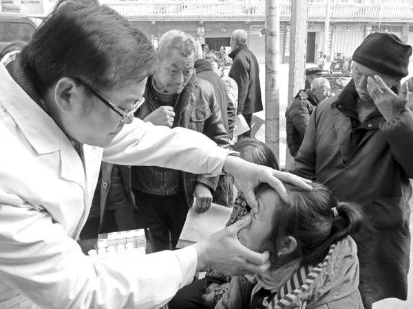 曾都区驻万店镇先觉庙村扶贫工作队日前开展送医送药活动,他们为当地村民进行健康体检和治疗,受到当地村民的欢迎。(本报记者 孙洪涛通讯员 雷福镇 李晓春摄)