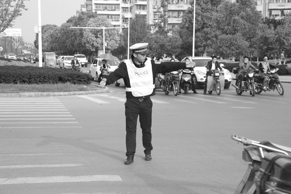 在城区各个重点路段、时段以及主要路口,每天都能看到一批身着警服和反光背心、佩戴白手套的民警、协警在道路上指挥交通,这是随州交警在城区创建的文明交通“三岗”交警形象服务型窗口,即干部高峰岗、护学岗、形象展示岗。 (通讯员 李月仙 周晋屹摄)