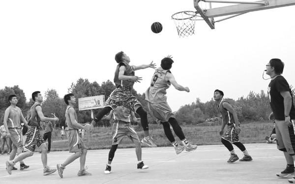 随州职业技术学院2016年新生篮球赛近日拉开帷幕,来自该校汽车、机电等学科的6支新生代表队参加比赛。图为4月14日,鏖战了一周的两支队伍激烈角逐争取晋级。 (本报记者 王 天 摄)