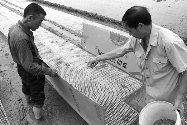 4月15日,随州高新区淅河镇独山村向科技要效益,利用秧盘下稻种,秧苗撒播在大田,不仅省工、省时、减少劳动强度、降低生产成本,还能增产增收。(通讯员 石守京摄)