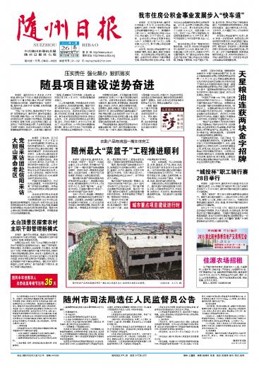本报讯 通讯员杜良才、蒋金胜、江开军报道:面对经济下行压力,随县紧紧围绕年初确定的93个重点项目,建立“四大家”领导抓项目建设长效机制,破解项目建设 “包而不推、推而不进、进而不快”等问