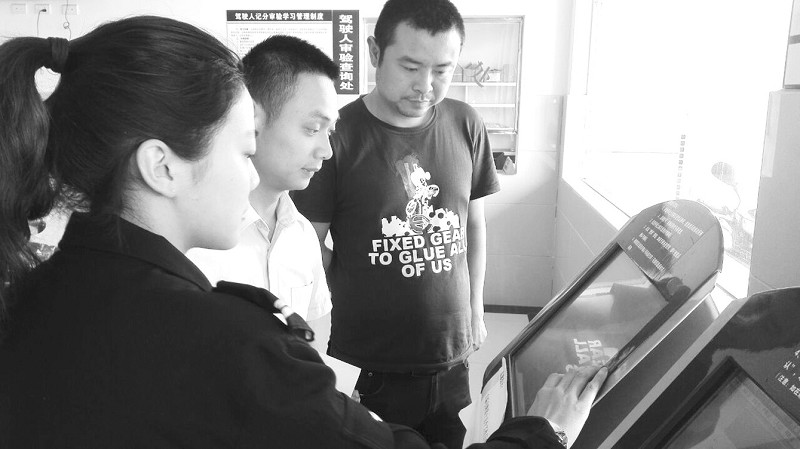 随县车管所不断提高服务质量,努力打造窗口形象。该所从岗位抓起,从细节入手,规范言行举止,规范业务流程,让服务更人性化。图为工作人员正在机动车号牌自选终端机旁指导群众操作。 (通讯员 王大群摄)