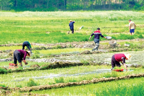四月二十八日,随州高新区淅河镇余家畈村田间地头一片繁忙景象。农民抢抓农时耙田、播种,为育秧作准备。(本报记者 李文军摄)