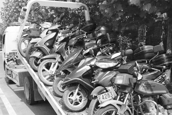 为打好“创卫”倒计时攻坚战,为丙申年世界华人炎帝故里“寻根节”营造安全、有序、畅通的交通秩序,市公安局交警支队进一步加大交通秩序整治力度。对占用公交港湾停靠站、主次干道违法停车、占道停车等车辆实行“拖离”行动,对无牌无证、牌证不全、无交强险等违法摩托车进行查扣。(通讯员 李月仙 周晋屹摄)