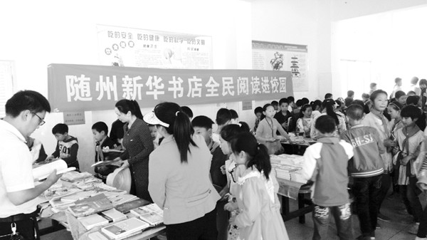 5月3日,随州高新区中心学校与随州市新华书店共同举办的“2016年‘推进全民阅读、共建书香校园’活动”走进大堰坡小学,向学校赠送了文化书籍650余册,价值10000余元。(通讯员 苏 明摄)