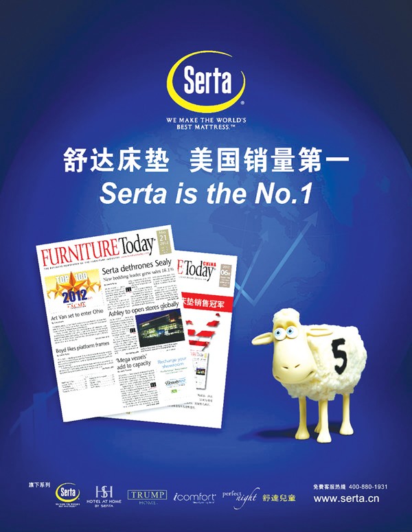 而今,以“AlwaysComfortableTM”为使命的舒达,将一如既往地将完美睡眠诠释给全世界。自1931年在美国成立以来,美国舒达一直专注于睡眠领域,在技术上不断创新,拥有多项业界专利,一直引领全球床垫技术的革新与发展。舒达是国际睡眠基金会(NationalSleepFoundation,简称NSF)唯一官方认证床垫品牌,荣获最近年度最受女性欢迎床垫品牌(2014&2015Women'sChoiceAward)。同时,自2011年起,舒达连续4年稳居全美销量第一! 舒适、品质和价值,造就传奇舒达!