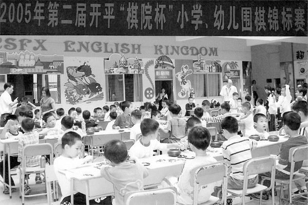冷均鹏为孩子们讲授围棋知识。 (记者 陈琳摄)