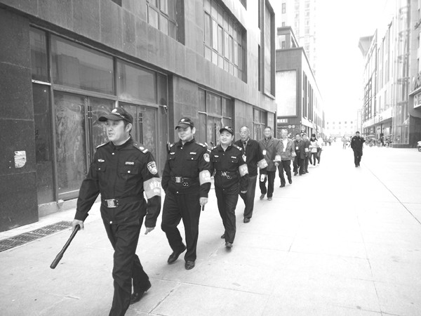 为切实践行“三民工程”,维护居民良好的生活环境,曾都区西城铁树社区成立了一支由社区民警、治保主任、巡防队员、网格员、社区老党员、退休老干部等组成的社区义务巡逻小分队,围绕铁树社区居民生活区、大润发广场商业中心地带等重点部位和场所,每天分两班,加强巡逻防范,维护社区治安。 (通讯员 黄海龙摄)