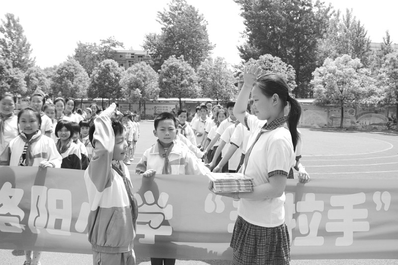 近日,曾都区文峰学校少先队与曾都区洛阳镇小学组织了一场“手拉手”联谊活动。活动中,文峰学校向洛阳镇小赠书两千余册,少先队员们也送上自己准备的礼物以及文化用品。(通讯员 王力 施圆圆摄)