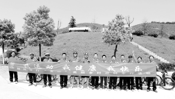 近日,工行湖北随州分行组织员工参加“我运动、我健康、我快乐”美丽乡村游骑车行活动,既缓释了工作压力,又陶冶了员工情操。 (通讯员 龚萱摄)