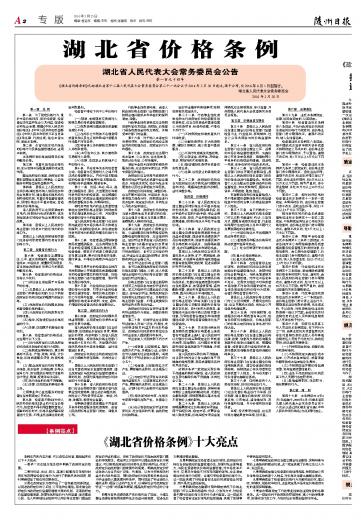 第一百九十四号 《湖北省价格条例》已由湖北省第十二届人民代表大会常务委员会第二十一次会议于2016年3月30日通过,现予公布,自2016年6月1日起施行。 湖北省人民代表大会常务委员