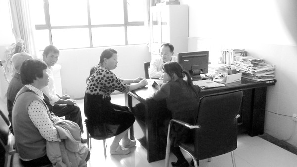 随州精神卫生专业学术带头人、曾都医院心理科主任鲁丛林,给就医者及其家属做心理咨询的情景。 (记者 周强摄)