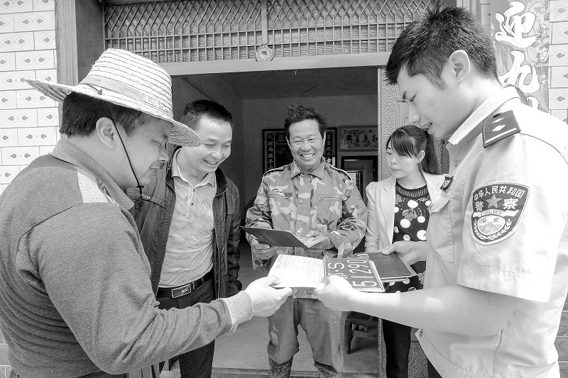 曾都区洛阳镇派出所在全镇设立10余个便民服务点,开展“送证上门”便民服务,及时为村民送去身份证、驾驶证、摩托车牌证等,受到群众赞誉。 (本报记者 李文军 通讯员 梁远林摄)