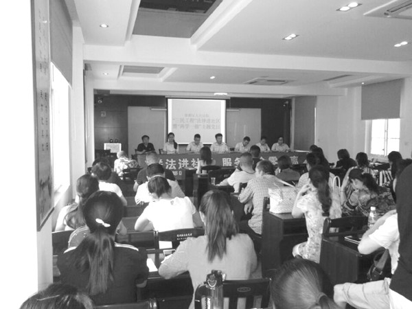 5月31日下午,曾都法院“法律六进”活动之一的“法律进社区”在西城办事处双龙寺居委会开展,六名青年干警向社区居民现场讲课,宣传法律知识,提供法律咨询。这是该院继送法进企业之后的又一惠民亮点。 (通讯员 志 宇摄)