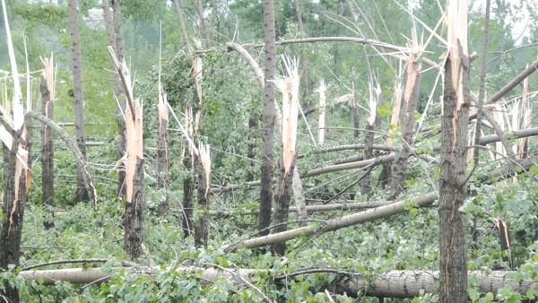 灾害现场,有的大树被连根拔起,有的被拦腰折断,大风还掀掉了部分民房上青瓦或铁皮瓦,许多房屋门窗损毁,水稻、玉米等作物枝叶碎落,农作物大面积被毁……周边许多村民表示,这样的强风暴雨并伴随着冰雹,他们也是第一次遇见。由于灾情发生在傍晚,许多人都在家里休息,公路上也少有行人和车辆过往,所以未发生大量人员伤亡事故。