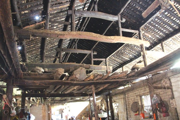 朱大妈现在住的房子过去是生产大队的卫生室,老人告诉我们,现在她和她中风偏瘫的老伴就住在这座老房子里。走进房子,给人的感觉是阴冷潮湿,房顶的木质屋架完好如初,只是上面落有一层厚厚的灰尘,这些灰尘见证着整座房子的历史和沧桑。朱大妈家除了老房子,那些鲜见的老家具在这里也能看到一部分,如箩筛、条几、香案座、老式八仙桌等等。