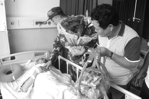 “我们一直想找到那两位好心人,可我一直一个人在医院照顾他脱不开身,只得委托朋友多方打听。”陈先生说,“6月7日下午,那名仍然牵挂着老人病情的武警战士,因不能亲自前去医院探望老人,委托朋友周先生到曾都医院看望,我才得知救人的武警战士姓吕。”