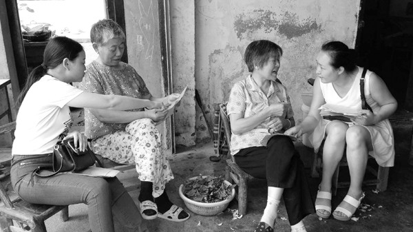 曾都区西城双龙寺社区的网格员们带着社区医生入户宣传 《国家基本公共卫生服务项目》,并指导患有慢性疾病的老年居民正确服用各类药物。(本报记者 周强 通讯员 蒋君 摄)