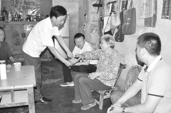 随县住建局驻高城镇七里塔村工作队日前走访慰问该村汪新兰 (右二)等老党员,给老党员送去组织的关怀。(本报记者 陈德友 摄)