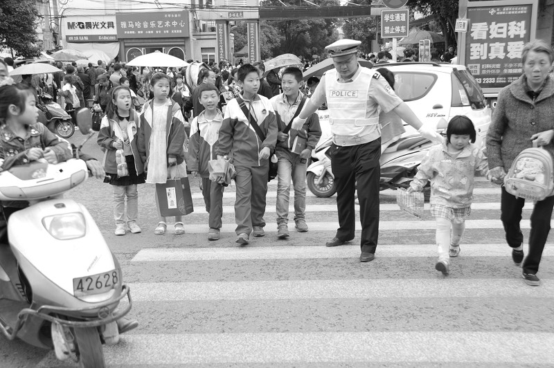 交警提醒学校门口注意交通安全