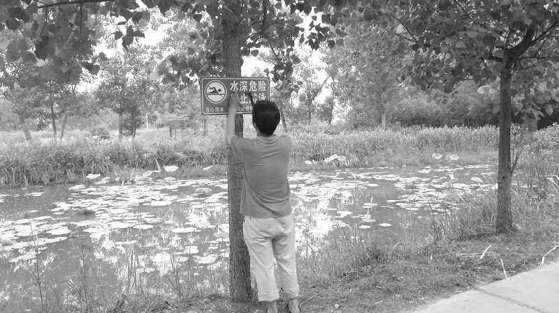 池塘边安装防溺水警示牌