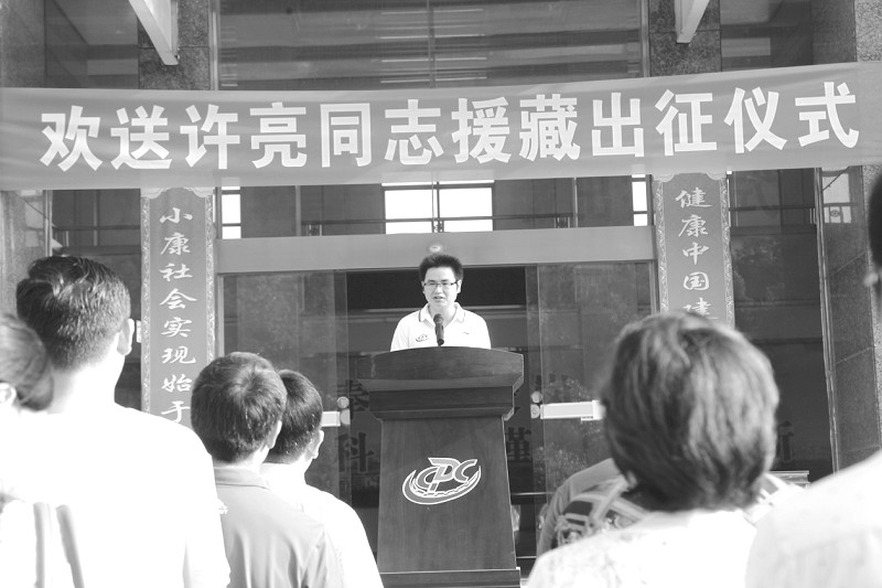 7月9日,欢送许亮同志援藏出征仪式在市疾控中心大楼前举行。许亮作为市疾控中心年轻有为的结防所所长,听从组织号召,放下家中有孕的妻子,将随州疾控好的工作经验和先进技术带向藏区,为两地交流作出自己的贡献。 (通讯员 唐心敏摄)