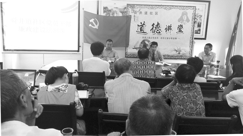 近日,曾都区检察院以开展“加强举报人保护,惩治群众身边腐败”举报宣传周活动为平台,积极探索检察官定点联系社区制度,组织资深检察官为曾都区东城办事处舜井道社区干部、党员代表和网格管理员讲授党风廉政建设法制课。 (通讯员 严仕强摄)