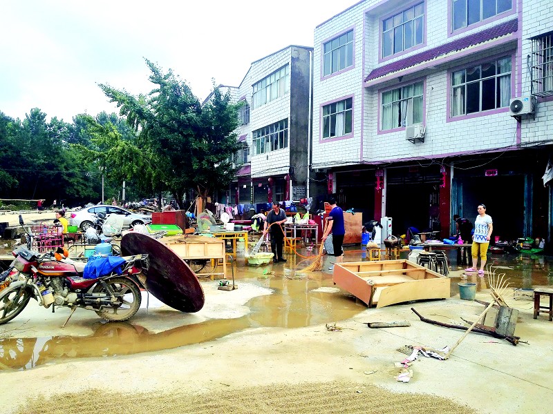 昨日,雨过天晴。曾都区洛阳镇居民将家中被水浸泡过的家具等进行清洗,晾晒,尽可能减少损失。(本报记者 冯家园摄)