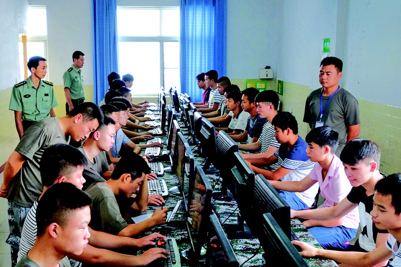 曾都区人武部严把2016年夏秋季征兵关,坚持廉洁征兵,在体检中运用信息管理系统。截至8月4日,该区已有519名青年进站体检。图为参军青年正在接受心理测试。 (本报记者 李文军 摄)