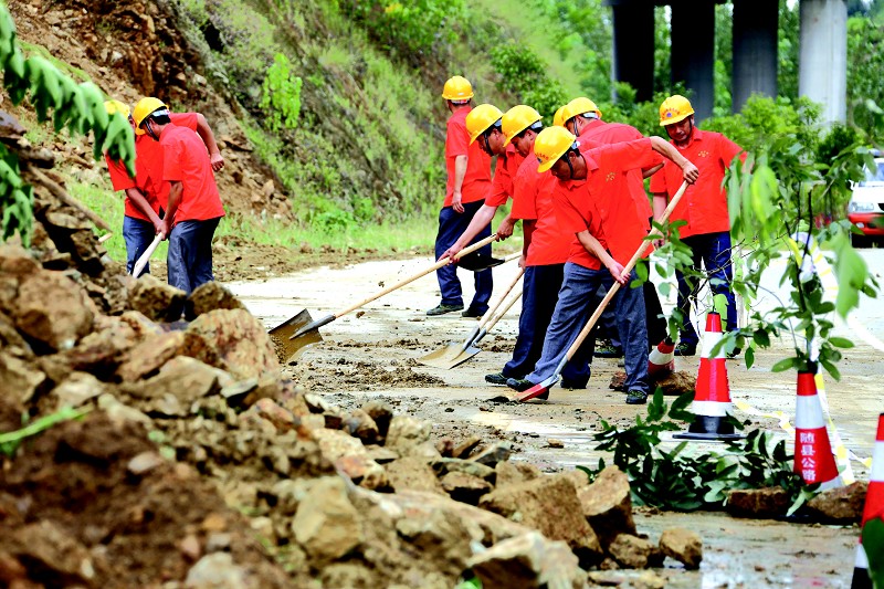 随县公路局日前在厉均公路组织开展了一次以清除公路塌方、恢复交通畅通为主题的应急演练,提高公路部门的应急抢通能力。 (本报记者 孙洪涛 通讯员 刘文生 摄)