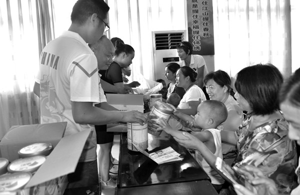 随州高新区淅河镇妇联“牵”手旗帜婴儿乳品股份有限公司开展精准扶贫活动。日前,该公司将价值30多万元的奶粉送到淅河镇贫困户手中,受到群众称赞。(本报记者 孙洪涛 通讯员 王涛摄)