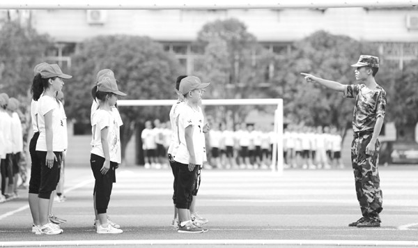 新学期即将开始,许多学生已经重新回归集体生活,准备迎接新学期的到来。图为8月24日随州市外国语学校的新生军训场景。(本报记者徐 斌摄)
