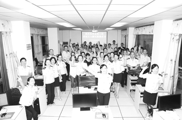 为确保“金税三期”顺利上线,广水市国税局在省国税局统一安排部署下,顺利通过系统压力测试。(通讯员 邓晓辉摄)