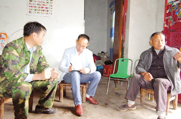 10月20日,随州日报“精准扶贫”工作队在随县殷店镇小东庙村丁明爱家,调查了解脱贫状况,研究今冬明春香菇栽培、农田种植等脱贫项目。(本报记者 老锣摄)