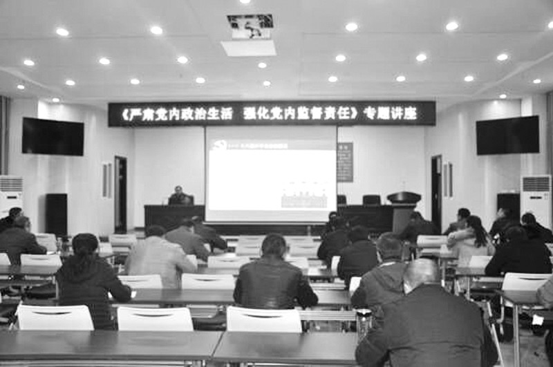 近日,随县财政局举办 “严肃党内政治生活,强化党内监督责任”专题讲座,中共随州市委党校杨世勇教授现场授课,学习传达党的十八届六中全会精神。(通讯员 万祥摄)
