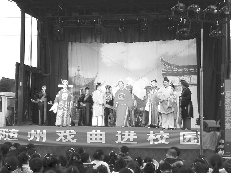 日前,随州市花鼓剧团到随州职业技术学院演出了戏曲《状元与乞丐》,受到师生的热烈欢迎。 (通讯员 魏丹摄)