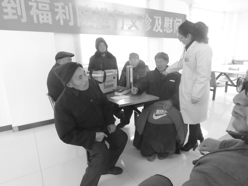 十二月十三日,广水市骆店镇卫计办、卫生院组织医护人员到镇福利院慰问送义诊,为五保老人免费体检送药,捐赠爱心款四千元,赠送一千余元的药物,在寒冷的冬日里为老人们送去春天般的温暖。(通讯员 刘晓斌 王小菊摄)