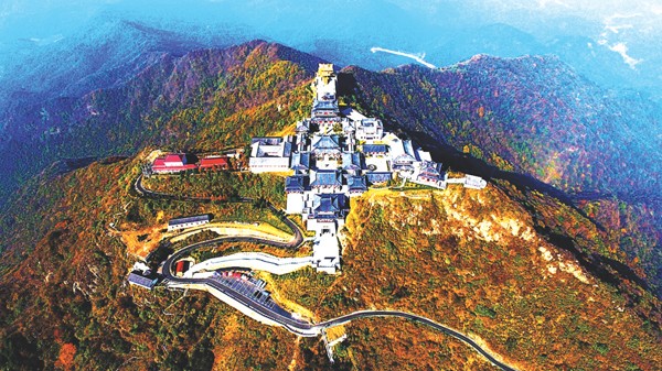 大洪山的“金顶”坐落在海拔1055米的宝珠峰之巅。登大洪山金顶,即攀人生高峰。金顶由清华大学古建专家王贵祥(古建筑学家梁思成的关门弟子)领衔设计,中国著名的工艺美术大师朱炳仁先生(清同治“朱府铜艺”的第四代传人)携浙江金星铜公司倾力打造。金顶自身高度全国最高(单体高度达15.9米,在中国同类建筑中位居第一),建筑体量全国最大(总建筑面积达1200平方米,用铜量120吨)。2015年9月,一代宗师、佛门泰斗本焕老和尚舍利子被恭迎于此永久供奉。